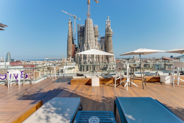 Uno de los secretos mejor guardados entre las terrazas de Barcelona, es la Terraza Ayre, ubicada en la azotea del Hotel Ayre Rosellón, a una manzana de la basílica de la Sagrada Familia.